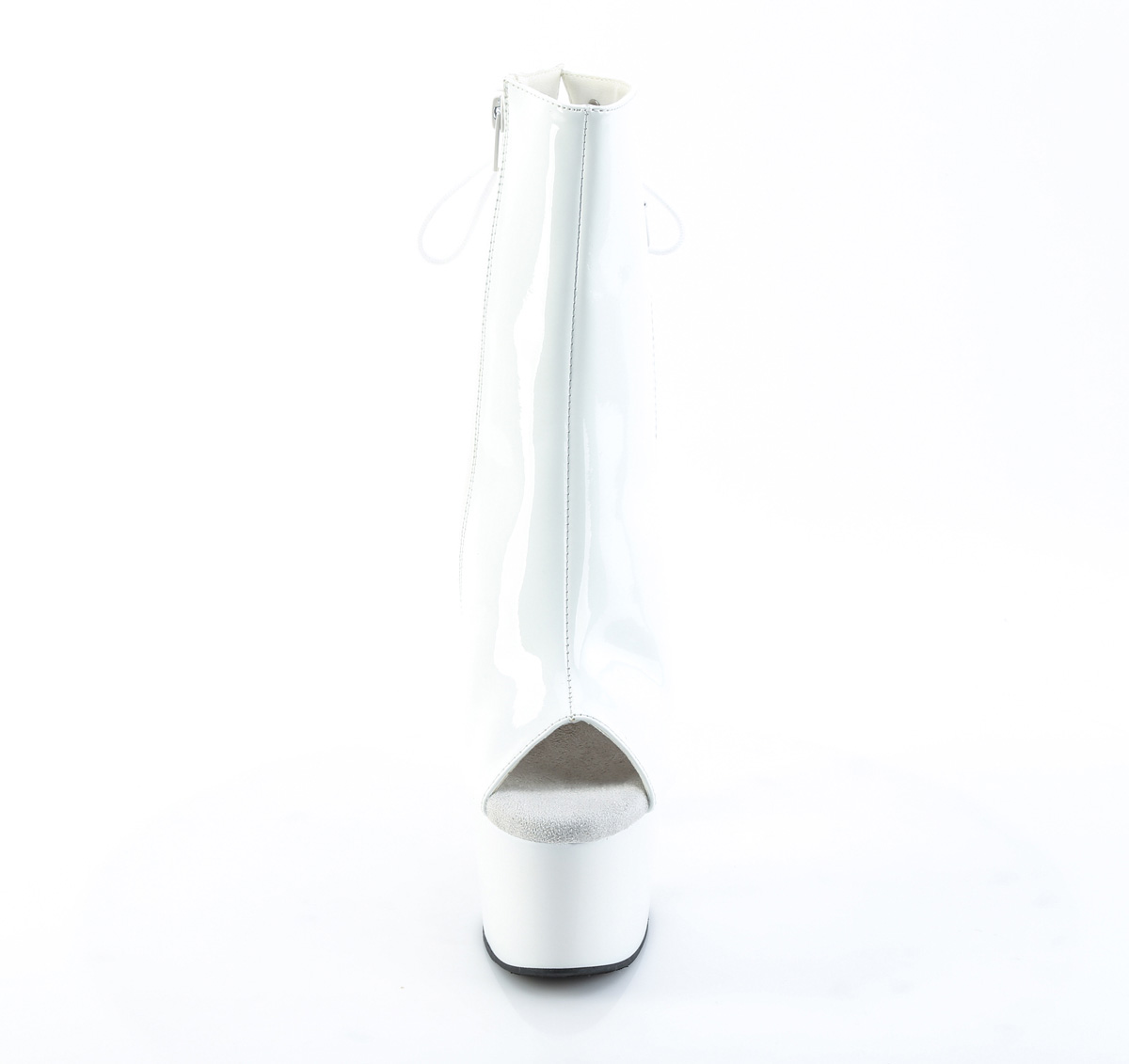 Mobile Preview: ADORE-1018 Pleaser Damen High-Heels Plateaustiefeletten weiß Lack Fersen- Zehenoffen