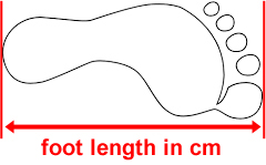 1. We recommend that you first measure the length of your foot in centimeters (from heel to longest toe)